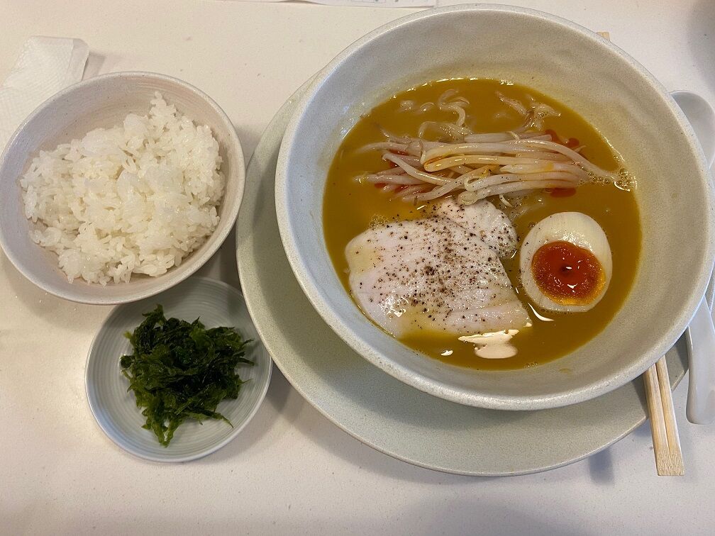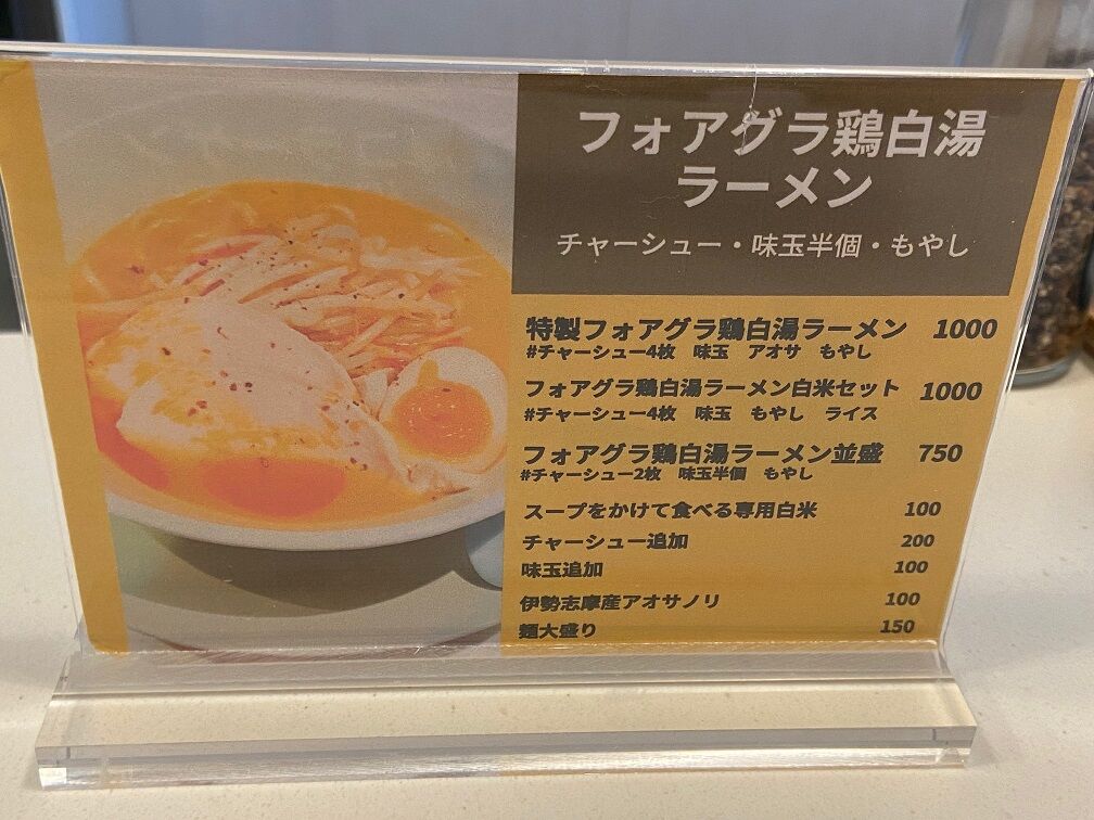 お店の基本メニュー「フォアグラ鶏白湯ラーメン」と「スープにかけて食べる専用白米」を注文。