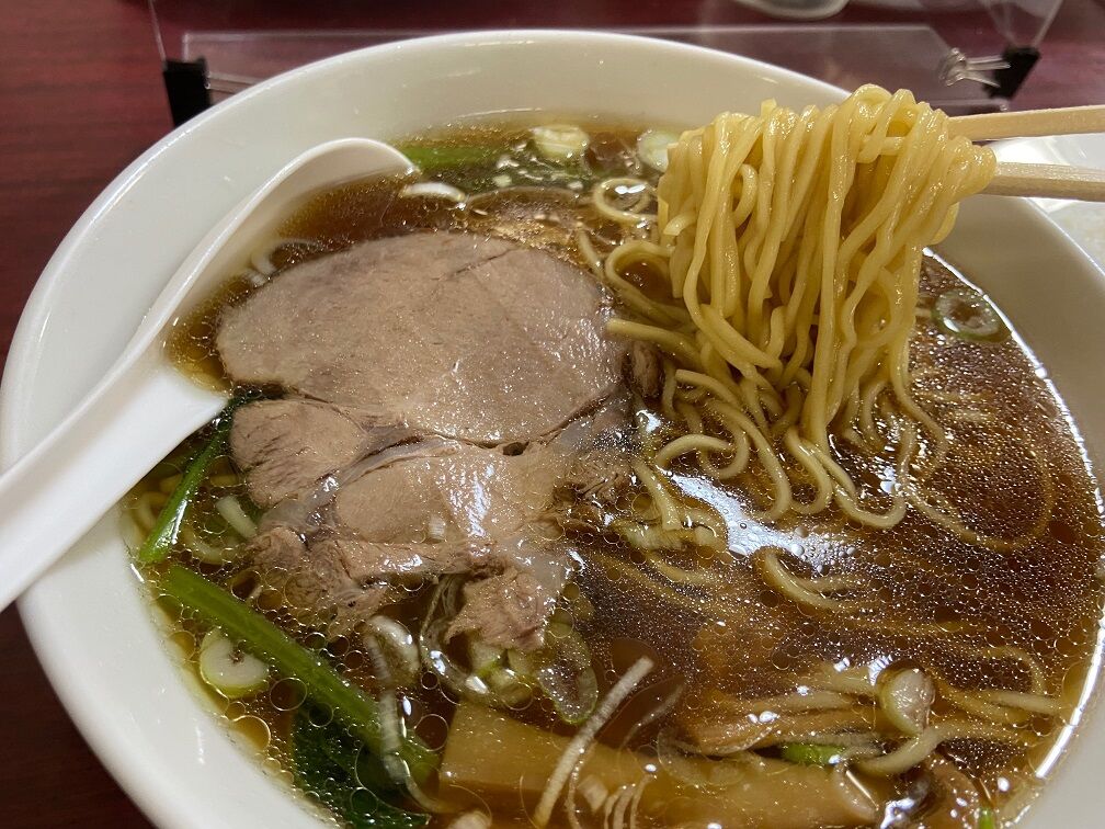 程なくして提供された「ラーメン」は、鶏ガラと野菜を煮込んだスープにチャーシューの煮汁を加えた清湯醤油味。 優しく懐かしい味わいは、まさに昔ながらの正統派東京醤油ラーメン。