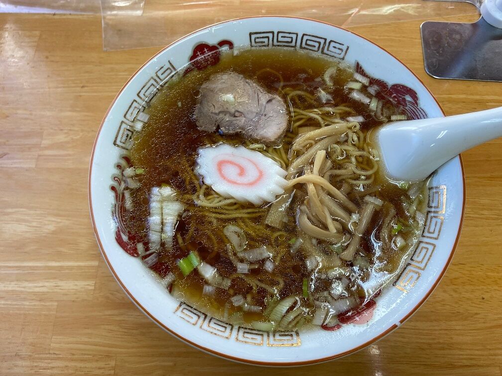 程なくして提供された「半チャーハン・ラーメン 700円」 鶏ガラベースのスープは昔ながらの優しいアッサリ醤油味で、まさに街中華の王道的な味わい。 特別感はないけどホッとする安心感がある。