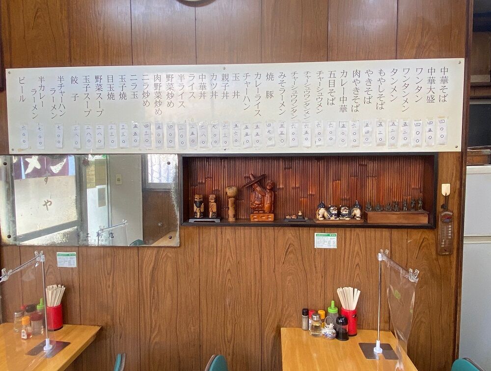 店内にカウンター席はなくテーブルが4卓で椅子は10席ほどとこじんまり。 注文は半チャーハンとラーメンのセットに決めていたので迷うことなくそれを。