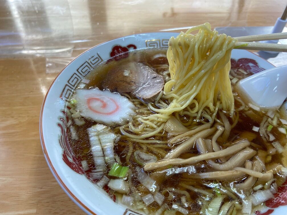麺は多加水の中太縮れ麺。 このタイプのラーメンに相性バッチリの麺で、神保町の「半チャンラーメン御三家(さぶちゃん・伊峡・成光)」の「伊峡」と同じ製麺所「小池製麺」のものだ。 チャーシューやメンマも昔ながらの物でノスタルジー。