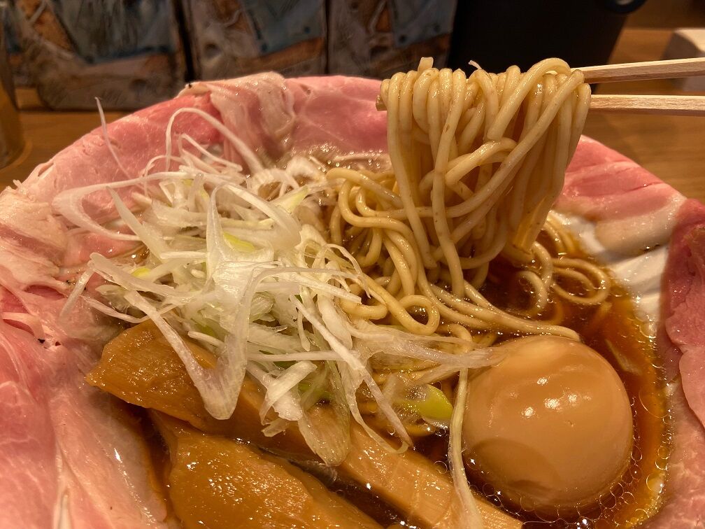 ごちそうさま。程なくして提供された「ピストル(関西だし醤油ラーメン)チャーシュー5枚・味玉」 薄くスライスされた5枚のチャーシューが丼の縁を覆いインパクト十分。 スープは名古屋コーチンの鶏ガラスープ×貝柱の少し甘めの清湯醤油味。 スッキリ淡麗ながらもコクがあり醤油の甘さが実に良く余韻に浸れる。