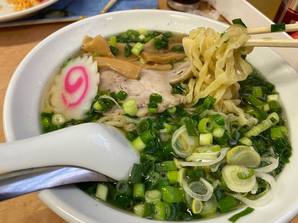 合わせる麺は自家製の平打ち縮れ麺。 佐野ラーメンと言えば青竹手打ち縮れ麺の印象が強いが、こちらの麺は讃岐うどんの製麺機を使用。 ツルツルモチモチで青竹手打ち麺に比べコシと歯ごたえが強くスープの絡みもいい。 青ネギは契約農家からの取れたて新鮮で、苦みや辛味がなくシャッキシャキ歯応えがたまらない。