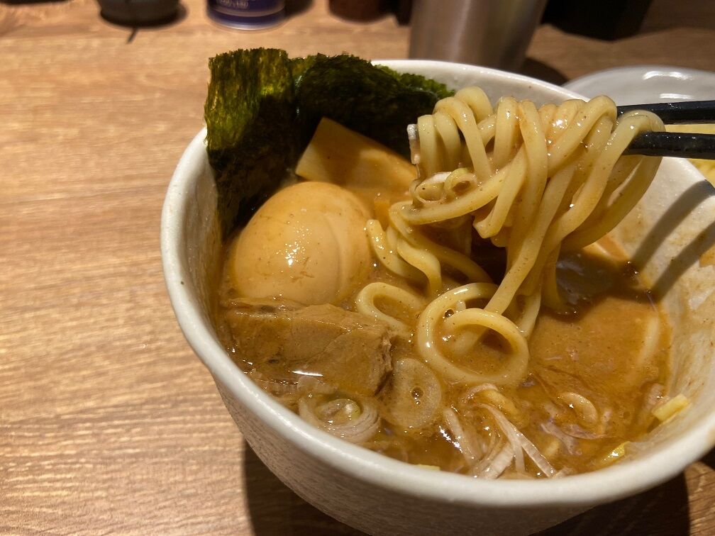 そのつけ汁に大成食品製のモチモチ太麺をつければ、重厚で濃密なつけ汁が麺に絡み、旨味と風味が口いっぱいに広がって食感&喉越しも良くて美味しい! 200gの麺もあっという間に完食し、スープ割を堪能し美味しくフィニッシュ。 らーめんも食べてみたし他の6店も気になるが、まずは未訪問の新宿本店にも行かなくては(^^;