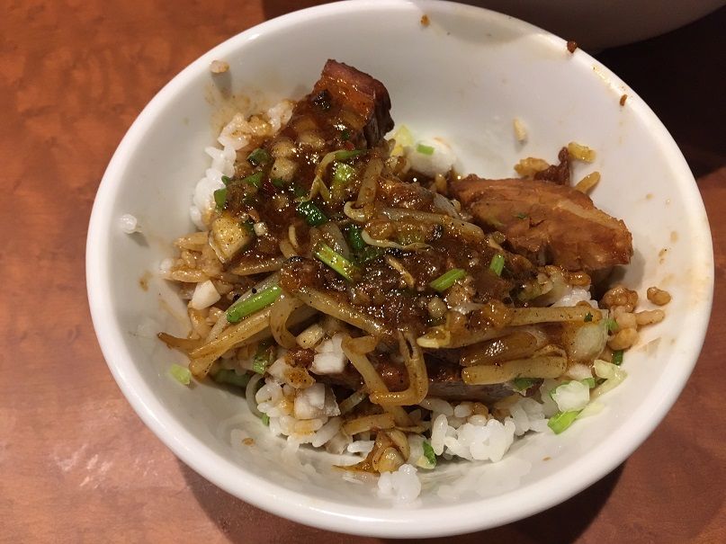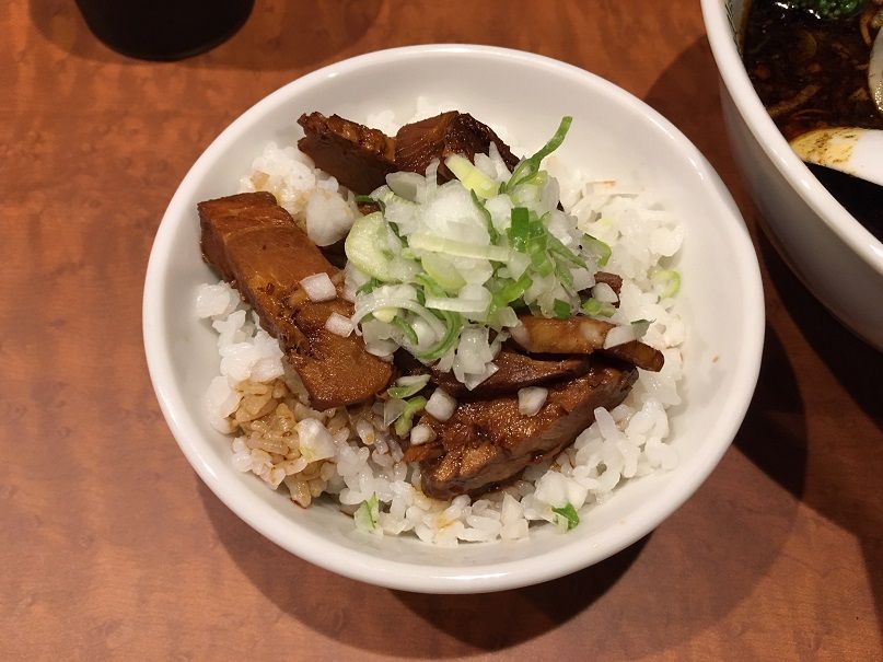一緒に頼んだ「肉飯」 程好く脂身のあるチャーシューは甘辛ダレで味付けされ、白飯にもピッタリで、途中からはラーメンのスープをかけてればカレー風に様変わり。 汗を流しながら完食。 スパイシーなスープがクセになる美味しい1杯。 次回は辛さやスパイスを増して食べてみたいですね。