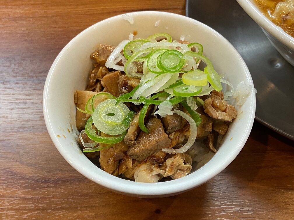 ご飯が見えないほど味付けチャーシューがタップリの「チャーシューごはん」 これで200円は素晴らしいとしか言えません。 思わずスープまで飲み干し美味しく完食。 近ければ必ず通うお店でしょうね~