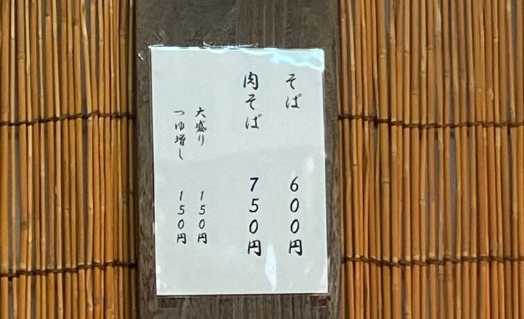 メニューは「そば」と「肉そば」の2択。 基本の「そば」は麺とスープと少量のネギだけとシンプル。 せっかく久しぶりに来たので「肉そば」を大盛りで注文。