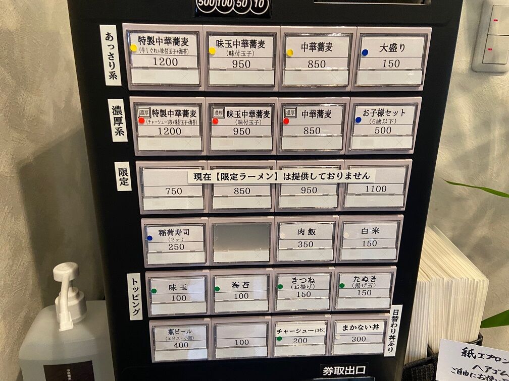 和歌山県産竹炭で染めあげられた「稲荷寿司」は油揚もご飯も真っ黒。 中にはチャーシュー片が入り少し甘めの味付けでこちらもメチャ美味! 油揚げがトッピングされた珍しいラーメンは、うどんや蕎麦のような感じもあり卓上の七味唐辛子も良く合う。 想像以上の美味しいさに大満足の完食。 濃厚系(白湯)も非常に気になります。