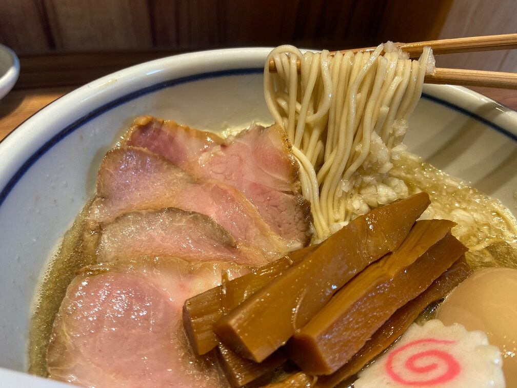 合わせるのは国内産小麦をメインにブレンドされた自家製麺の中細ストレート麺。 パツパツまではいかない歯応えの少し蕎麦チックな美味しい麺。 低温調理の柔らかなチャーシュー、味・歯応え共に好仕上りのメンマも美味しく、刻み玉ネギのシャキシャキ感も楽しい。 スープを飲み干し美味しく完食。 「醤油そば」も気になります。