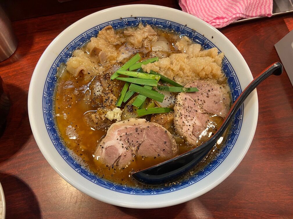 こちらは「青森ネギラーメン×アリランラーメン×ラーメン二郎という3種のハイブリッドラーメン」を提供。 「アリラン」と「二郎」は分かっていたが、「青森ネギラーメン」は青森市にある『あさ利』というお店だそうです。
