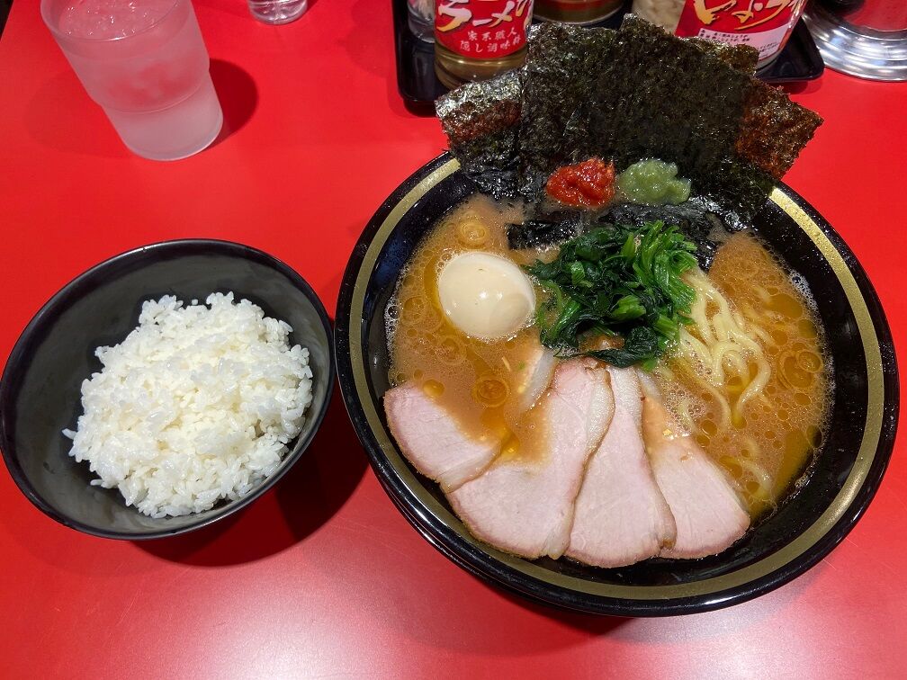注文は「チャーシューメン880円+味玉子100円」に家系と言えばの「ライス120円」も発注。 食券をカウンターに置く「麺・味・油」の好みを聞かれ、今回は無難に全て普通でお願いしました。