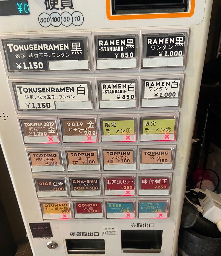 基本メニューは「黒(醤油)と「白(塩)」で、今回は発券機の先頭表記「TOKUSENRAMEN 黒 1150円」を注文。