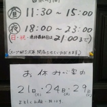 本日、見事にフラれました 昨夜ブログを確認した時には休みの情報なんて出てなかったけどなぁ~ 店の前で再度確認したら、日が変わった頃に更新されてました いくら不定j休とは言え、もう少し早く知らせて欲しいものです。 国分寺まで来てフラれる ...
